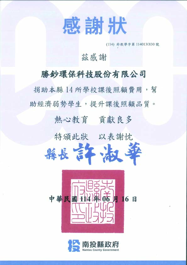 2025勝鈔贊助南投縣草屯14所國中小課後輔導經費